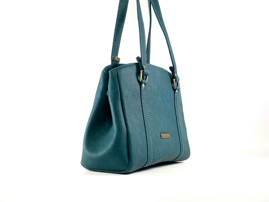 Teal Shoulder Bag – Graceful Structure with Zipper Top
