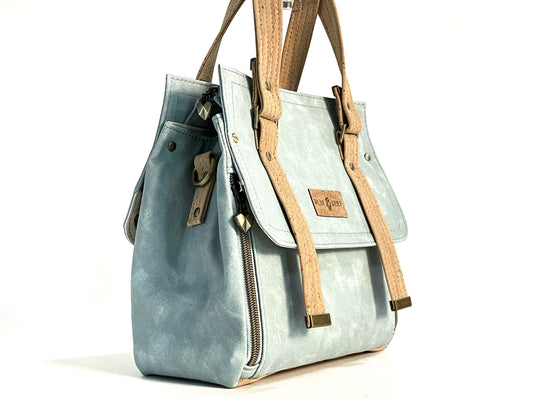 Turquoise and Aqua Cork Structured Hobo Bag with Coral Details