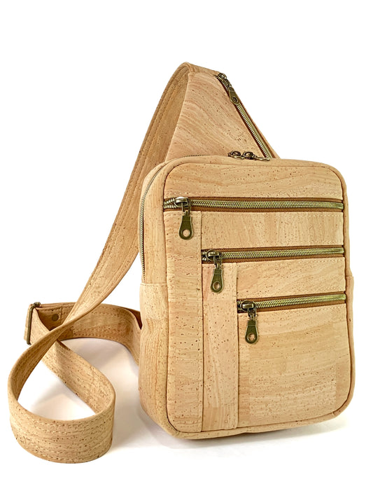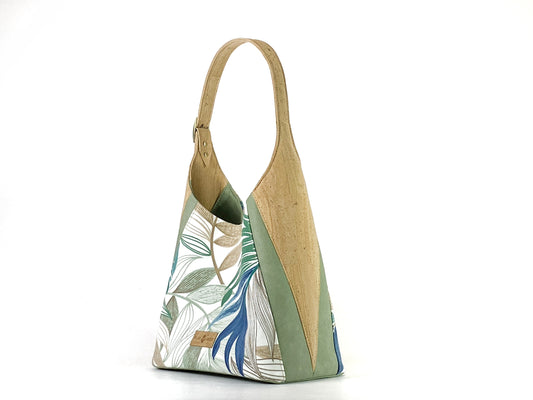 Palm Leaf Shoulder Bag – Cork and Canvas Handbag with Adjustable Strap