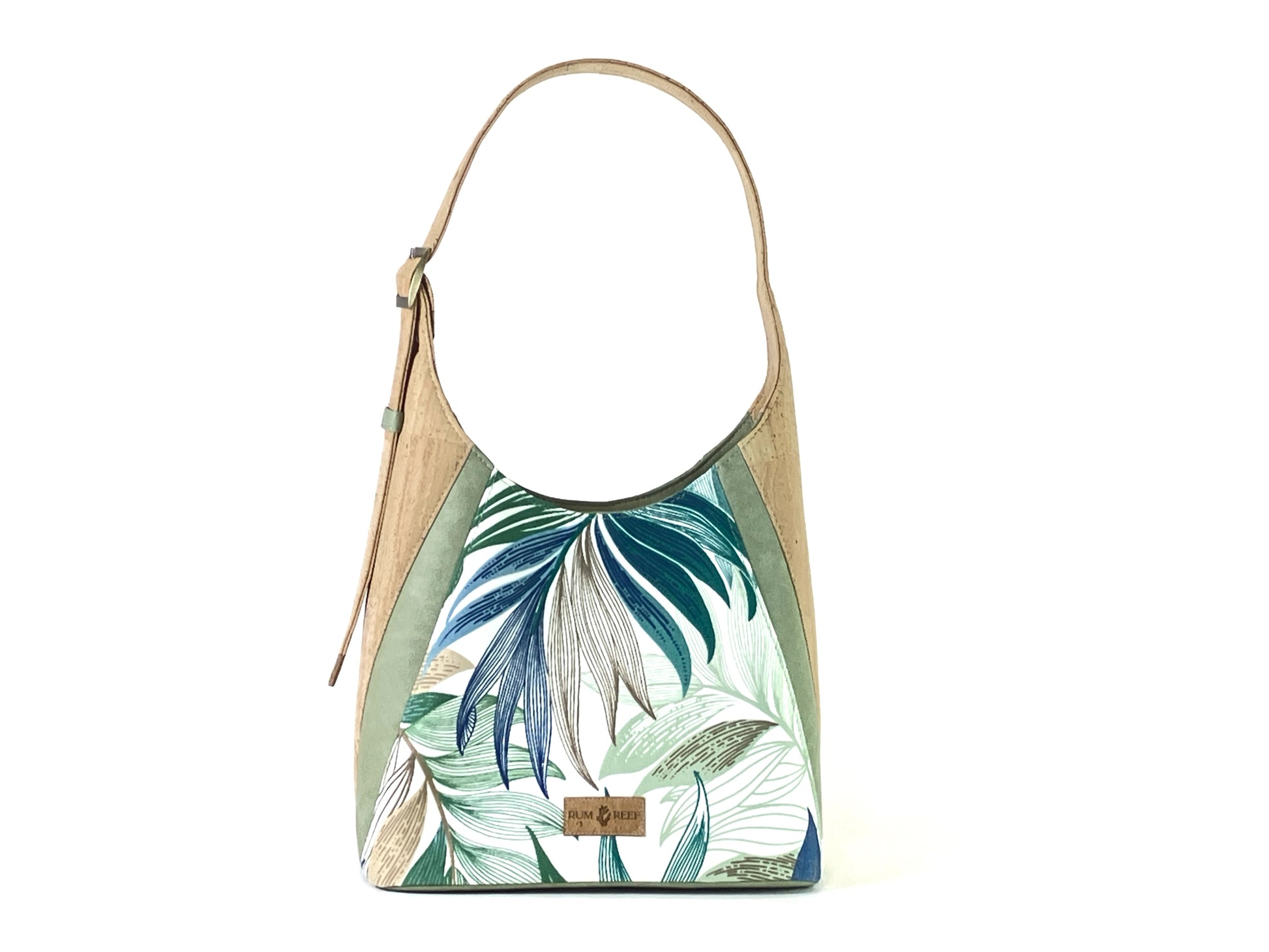 A sculpted shoulder bag with soft structure, the Adena balances relaxed cork with tropical detail. The palm print panels bring a fresh, coastal energy, while the natural cork and vinyl sides and base keep it light yet durable. A single strap adjusts for a comfortable fit, making this bag an easy everyday choice with just the right amount of personality.